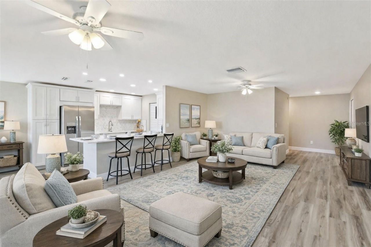 One or more photo(s) has been virtually staged. Welcome to easy, maintenance-free living in the highly sought-after New Haven 55+ community in Largo! NOW PRICED TO SELL, this fully renovated 2-bedroom, 2-bath villa-style condo offers the perfect blend of modern upgrades, comfort, and convenience-ideal as a full-time residence or the perfect Florida seasonal getaway.Step inside and immediately appreciate the light, bright open-concept layout, designed for both everyday living and effortless entertaining. Completely updated from top to bottom, this home features NEW luxury vinyl flooring throughout, fresh interior paint, recessed LED lighting, and stylish modern finishes that create a clean, coastal feel.The stunning brand-NEW kitchen serves as the heart of the home, showcasing quartz countertops, stainless steel appliances, sleek shaker-style cabinetry with soft-close hinges, and ample storage-perfect for hosting guests or enjoying quiet evenings at home. The seamless flow into the living and dining areas makes the space feel open, inviting, and functional.The spacious primary suite offers a peaceful retreat with a large walk-in closet and a beautifully updated en-suite bathroom featuring a quartz vanity and tiled walk-in shower. The second bedroom is generously sized-ideal for visiting family, guests, or even a home office-while the second bathroom has also been tastefully renovated with modern finishes.Additional upgrades provide true peace of mind, including a NEW AC, NEW electrical panel, and NEW plumbing, along with updated outlets, ceiling fans, and an interior laundry closet with space for a full-size washer and dryer.Enjoy added privacy with no rear neighbors, plus the convenience of a covered carport just steps from your door and plenty of guest parking. The low HOA offers exceptional value and includes cable, internet, water, sewer, trash, exterior maintenance, grounds, and flood insurance-making this a true lock-and-leave, worry-free property.Residents of New Haven enjoy a vibrant, active lifestyle with resort-style amenities, including a heated pool and spa, tennis courts, shuffleboard, fitness center, billiards room, and even extra parking for boats, trailers, and RVs-perfect for those looking to stay active and social year-round.Ideally located just minutes from shopping, dining, medical facilities, golf courses, and the beautiful Gulf beaches, this home puts you close to everything while still offering a quiet, welcoming community atmosphere.Whether you're looking to escape the cold, simplify your lifestyle, or enjoy year-round Florida living, this beautifully updated villa checks all the boxes.Don't miss your opportunity to own this move-in ready home at a fantastic new price-schedule your private showing today!